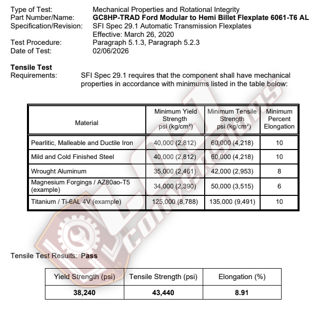 - SFI Approved Billet Aluminum Flexplate, 9lbs Rotating Mass, CNC machined, anodized, and laser engraved for long lasting good looks. Includes grade 10.9 Flexplate Bolts.