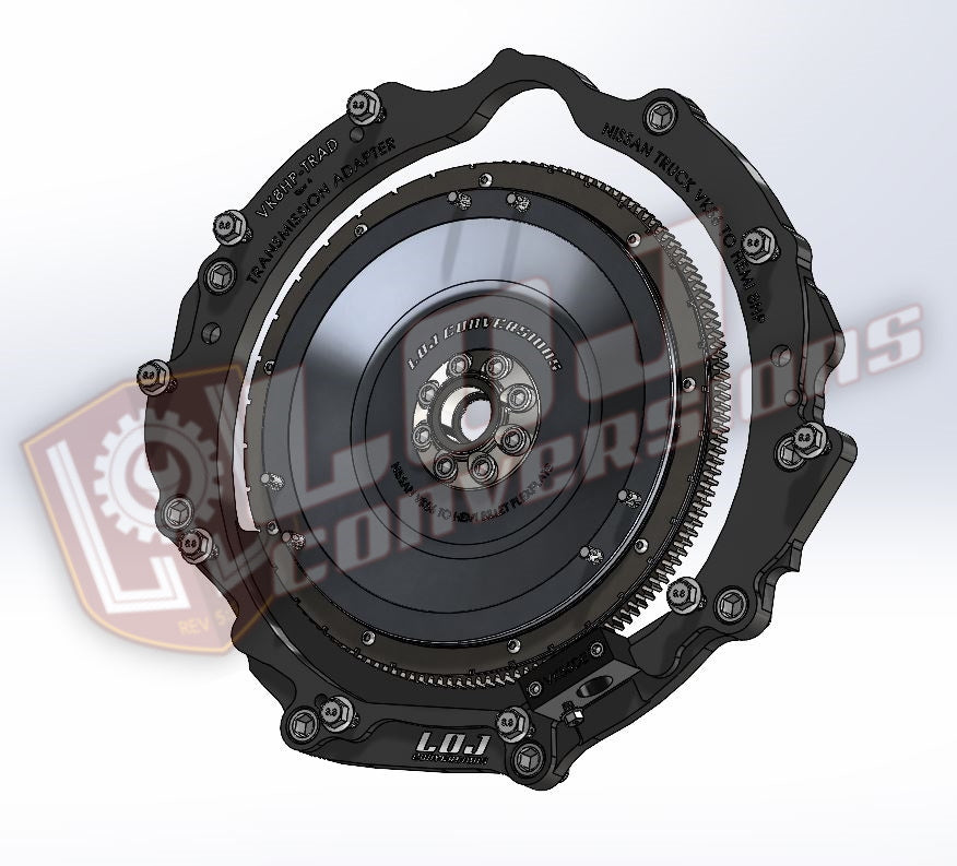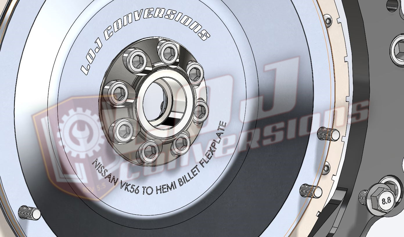 The LOJ Conversions Gen III/IV Nissan VK56 Engine to Hemi 8HP / ZF8 (8HP70, 8HP75, 8HP90, 8HP95) Transmission Adapter specifically designed for mating to sought after ZF 8-Speed transmissions to your favorite Nissan V8 Engine! The straight-forward approach and overall simple design will allow a seamless integration of the VK56 Truck engines with the Hemi Truck and Car versions of the ZF8. The adapter plate design incorporates a 360* mounting surface and mounts to the VK56DE and VK56VD engines and oil pans.