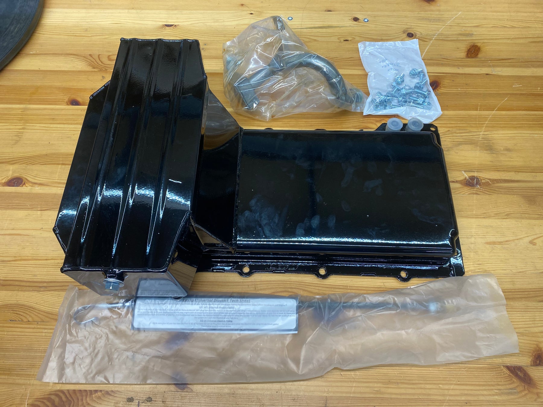 The LOJ Conversions LSx Swap Oil Pan includes Pan, Pickup, Dipstick, Hardware, and a new Gasket. It is constructed of Mild Steel and Powdercoated for enhanced durability. These pans also include a reinforced pan rail to strengthen the mating surface, resist warping, and prevent unwanted oil pan gasket leaks. Unlike fabricated aluminum oil pans, steel won't crack if you hit debris on the track! It includes road race baffling with trap doors and has a 7.0 Quart Capacity including filter.