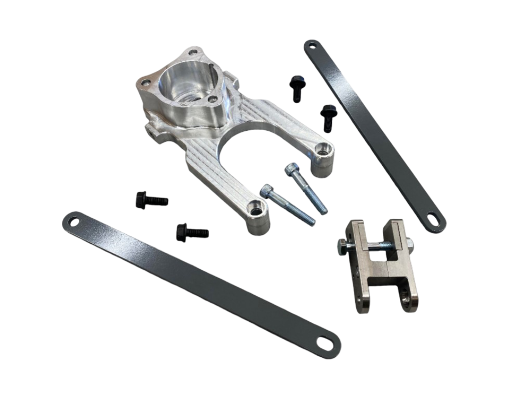 The LOJ Conversions Shifter Bracket and Linkage places the shifter in the proper location when using the LOJ 350Z Engine Swap Transmission Mount in the Nissan 350Z. Moves the shifter forward approximately 4.25" (108mm). The bracket is CNC Machined Billet 6061-T6 Aircraft Grade Aluminum and is compatible with any stock or aftermarket 350Z Shifter. The support brackets are CNC Waterjet Steel and Powdercoated for Durability and Corrosion Resistance. The shift linkage is CNC Billet Stainless Steel. Unsurpassed quality for years of trouble free service.